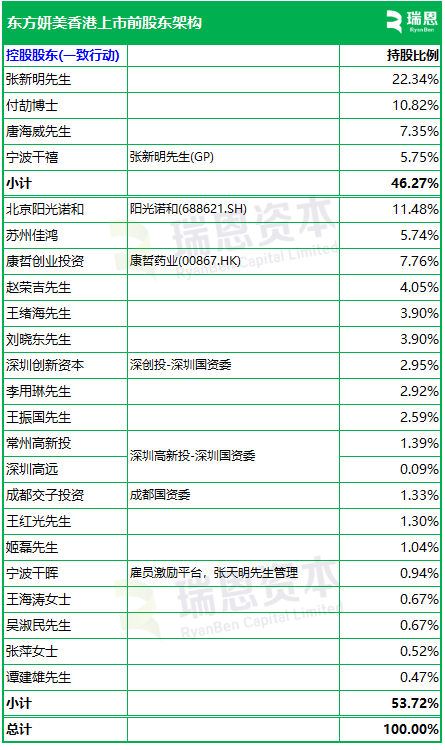 此外,东方妍美的股东还包括阳光诺和(688621.SH)、康哲药业(00867.HK)、苏州佳鸿、深圳国资委控制的数家实体、成都国资委旗下成都交子投资等。